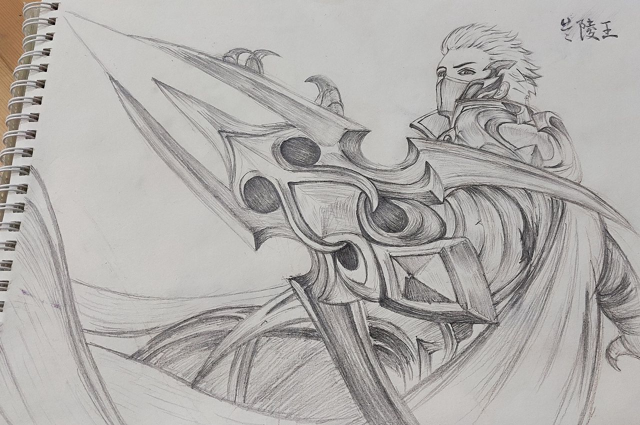 考试时无聊画了个兰陵王,不要问本子哪来的,问就是草稿本🐒💦