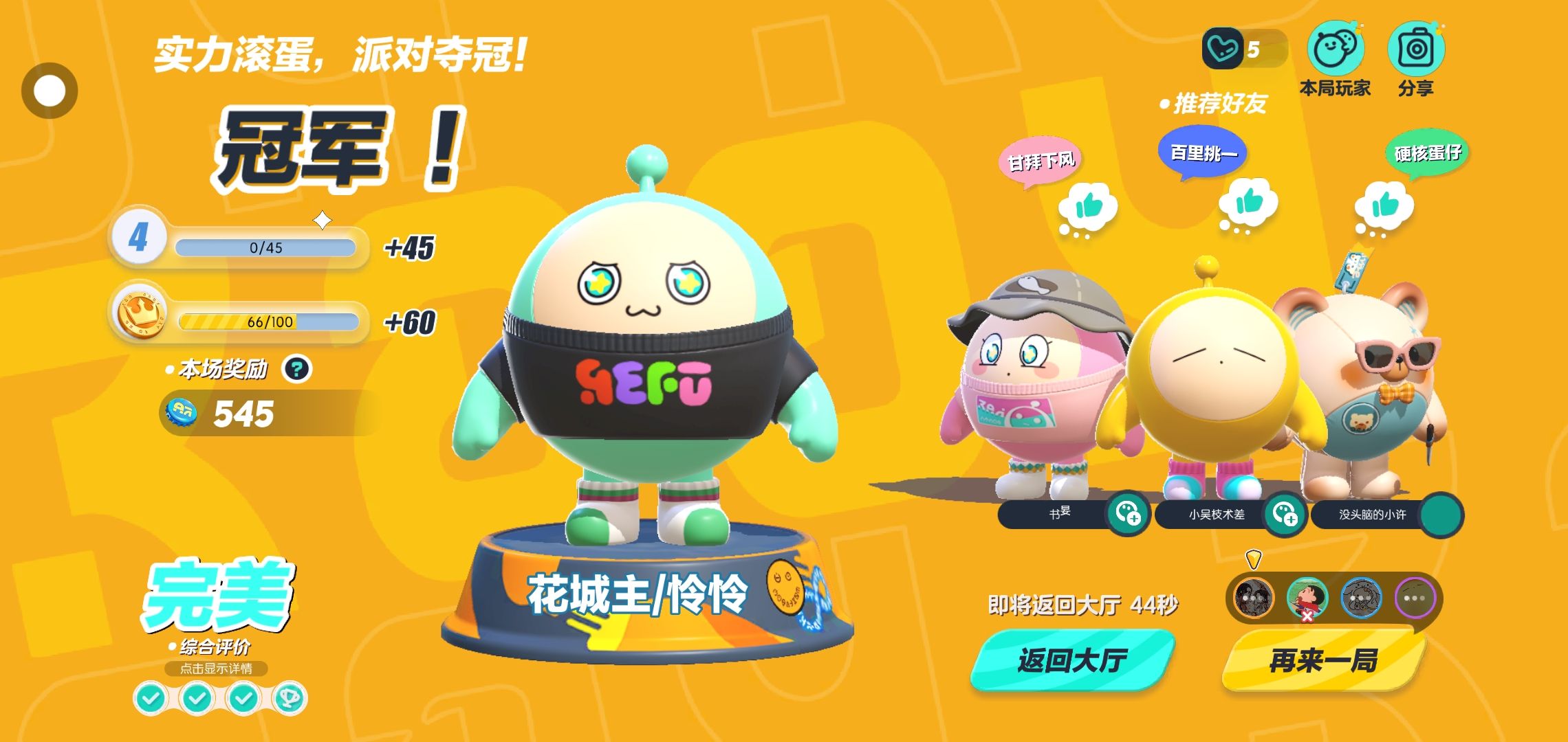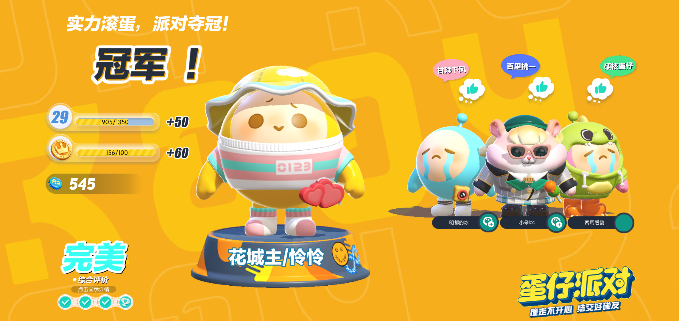 第一次玩蛋仔派对, 就得了冠军,好耶!😏🌝👍