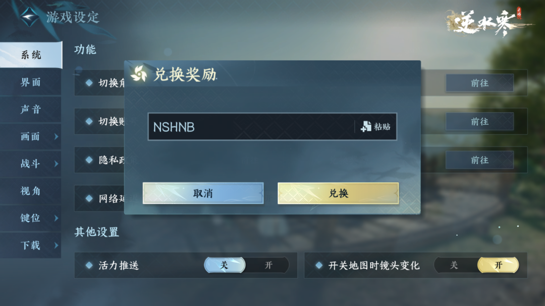 兑换方式:在游戏中打开右上角菜单,选择“设置”,再选择“兑换奖励”,输入兑换码“NSHNB”