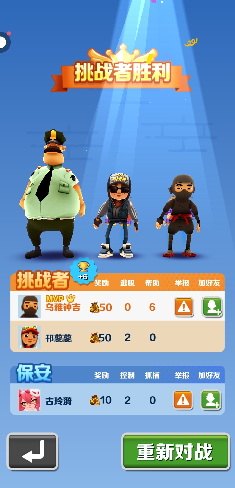 晒出你对抗赛获胜截图!保安/挑战者阵营不限~