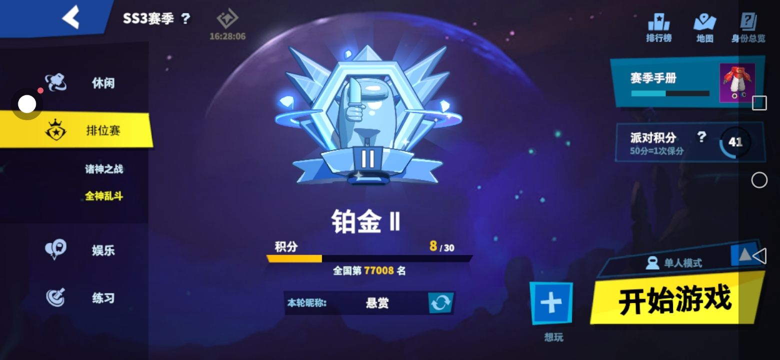 玩了几个月的账号,加油,努力,马上就能上钻石