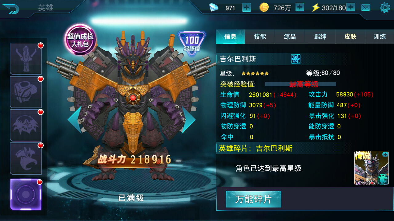 在《奥特曼传奇英雄》中,吉尔巴利斯是一位能量型角色,擅长强大的光线攻击。被动技能【装甲实体化】