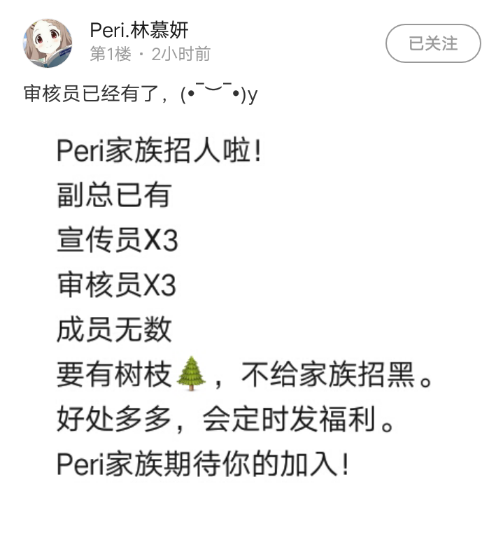 申请加入Peri,当成员就好了,有树🌳枝,不给家族招黑,要求全部达到了
