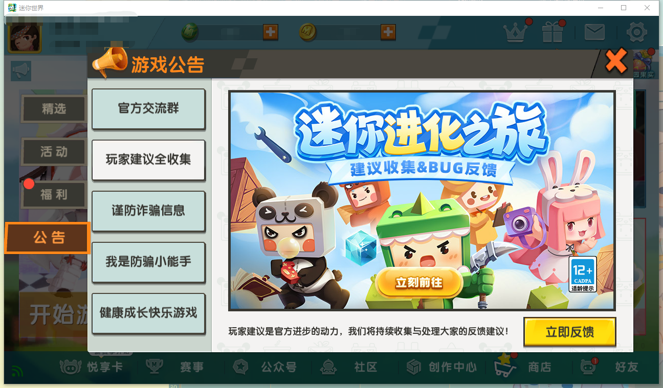 《建议收集&Bug反馈》专区上线,共创迷你进化之旅