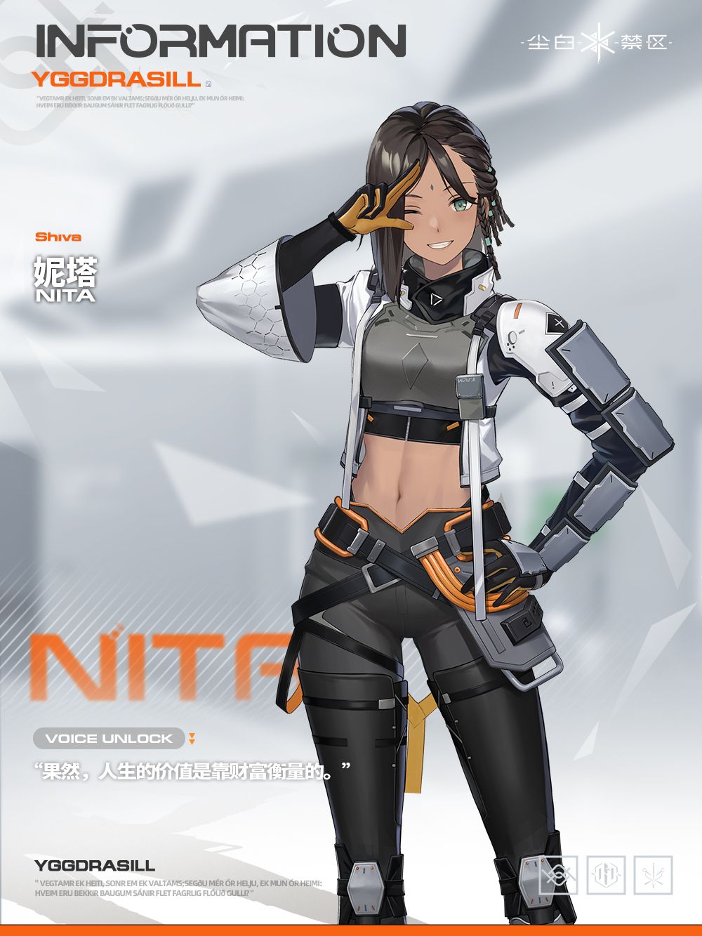 过去的伤痛使妮塔萌发并坚持了「力量应该用于保护而不是伤害他人」这种略显幼稚的想法。在得知加入海姆达尔可以赚取丰厚薪水后,妮塔主动接受巴德尔抑制剂人工诱发神格天启。