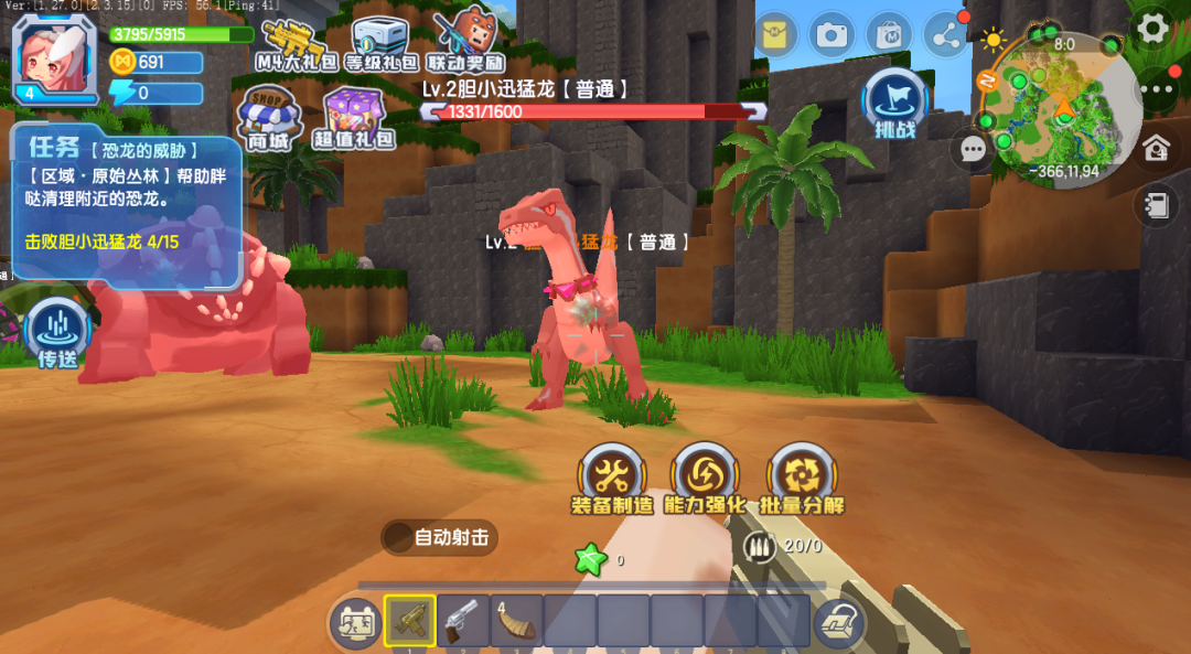 随着等级的解锁,我们还会解锁更多的区域,看到更多的迷萌小队成员的恐龙星冒险故事!此外还有全新的副本玩法,随着等级的提升将解锁“地下溶洞”和“迷你实验室”两个副本,完成副本挑战可以获得极品装备和巨量金币!