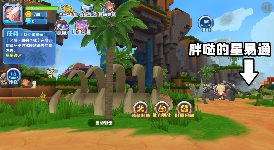 有了通讯工具,胖哒便指示我们前往深处寻找搭建信号塔的星灵波波,我们拿好武器,继续向着原始丛林深入……