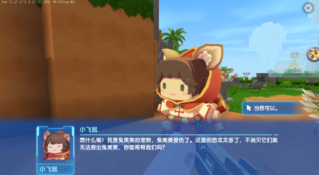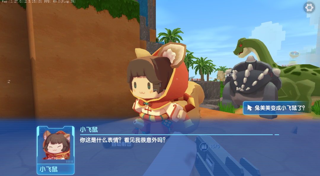 原来是兔美美的宠物——小飞鼠。在小飞鼠的解释下,我们了解了原来兔美美在这里受伤,而想要救出兔美美就要先消灭这里数量众多的恐龙。