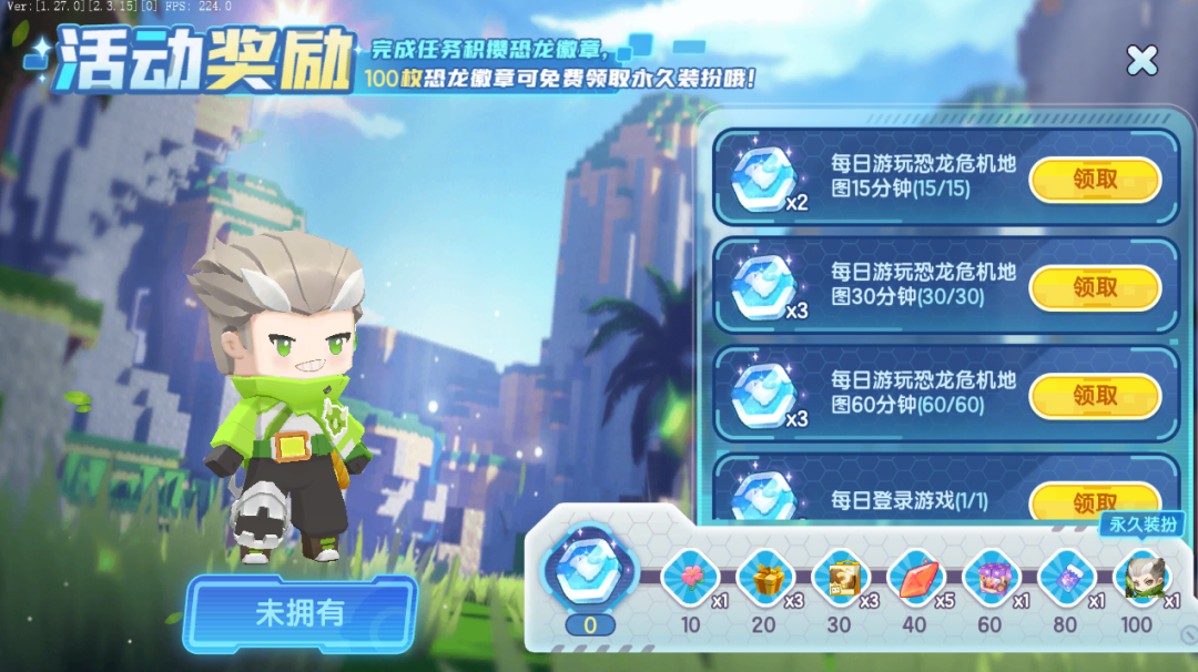 此外,参与活动完成任务积攒100枚恐龙徽章,还可以免费领取永久装扮——马丁尼!