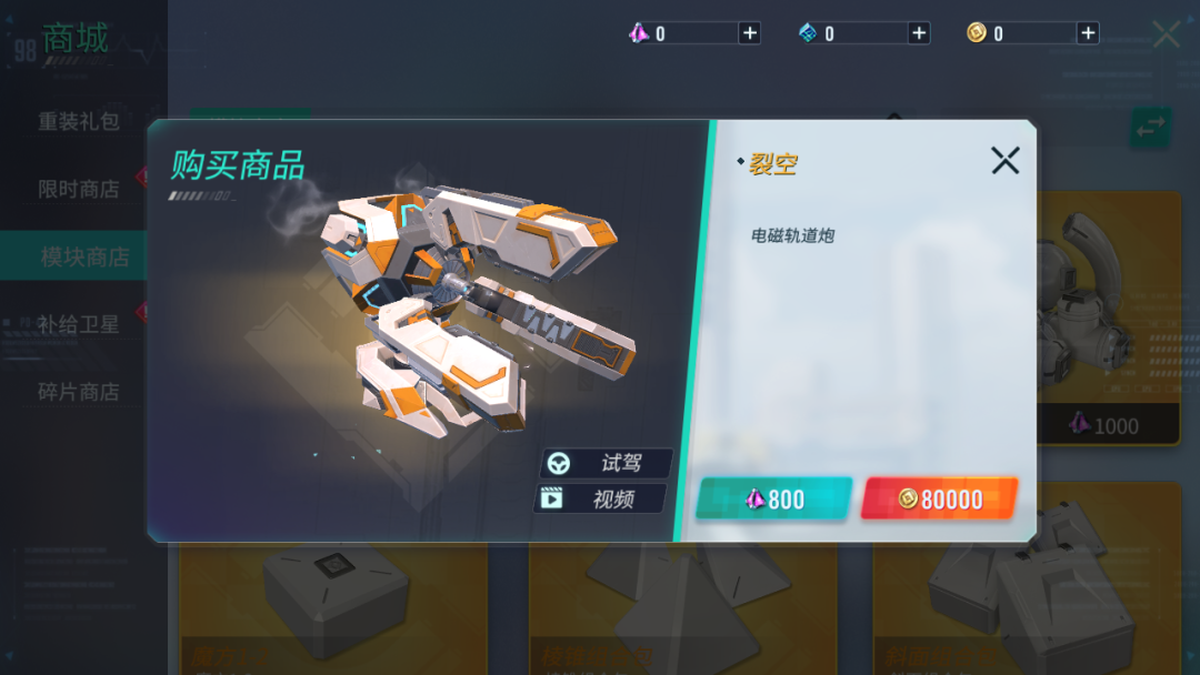 商城上新:本次更新后,【裂空-电磁轨道炮】将上架【商城-模块商店】,工程师们可消耗8万星币或800晶钻购买获得。
