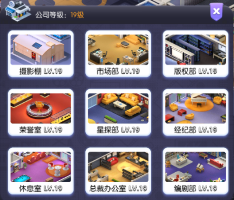 公司等级每提升一次里面各建筑都可以通过消耗金币进行升级