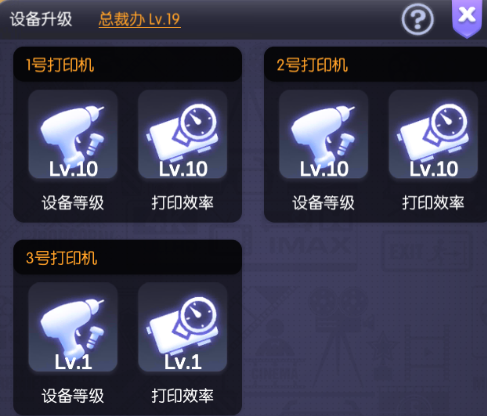 影院每提升一个档位,就可以提升影院各类设备的等级