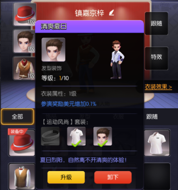每件衣装都是可以消耗金币与装饰卷进行升级提高词条百分比