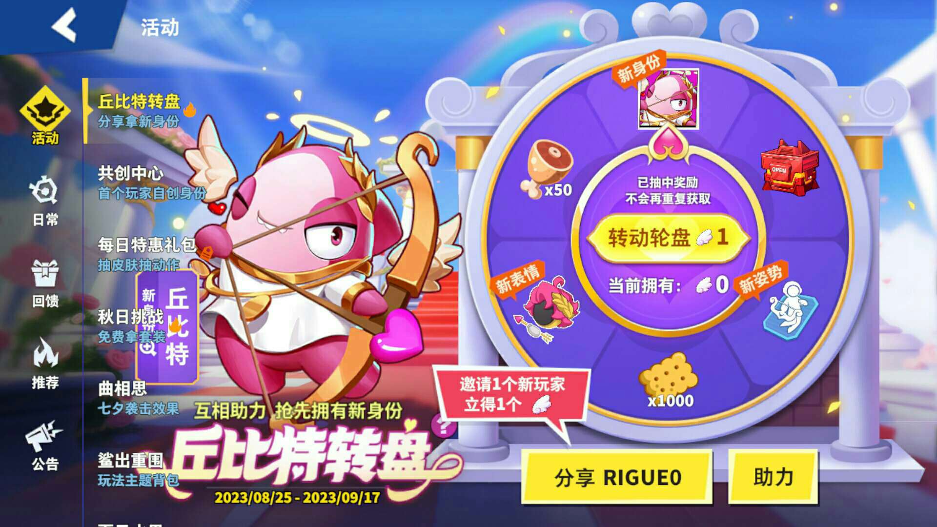 【太空行动】复制我的专属口令码:RIGUE0,互相助力拿全新身份丘比特!