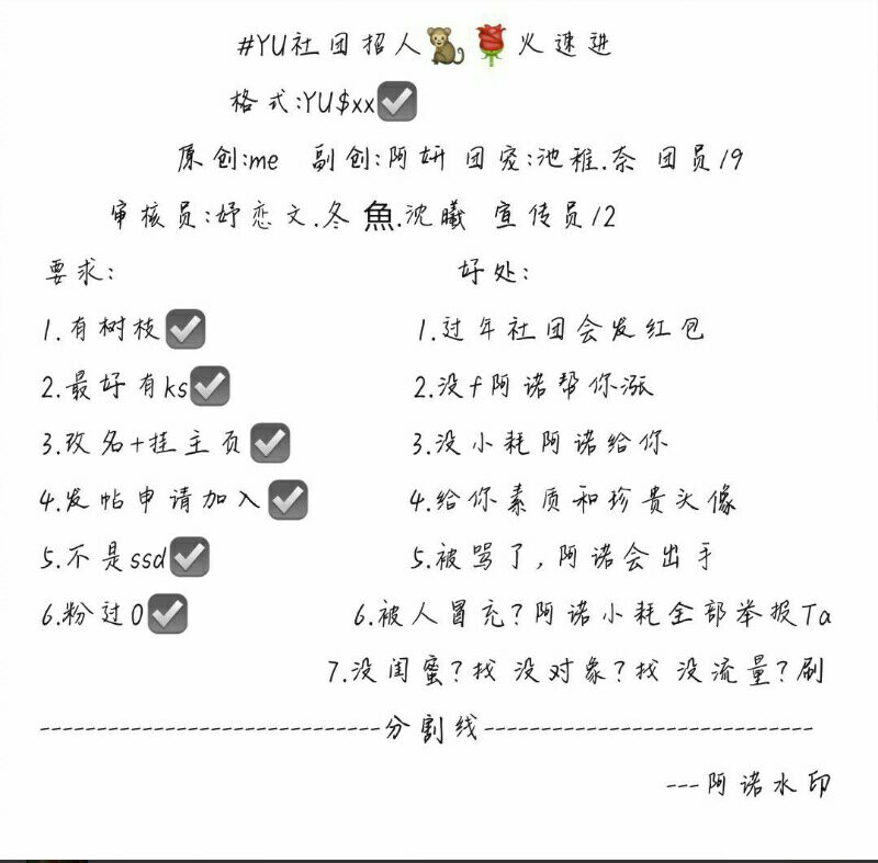 YU社团招人(阿诺)