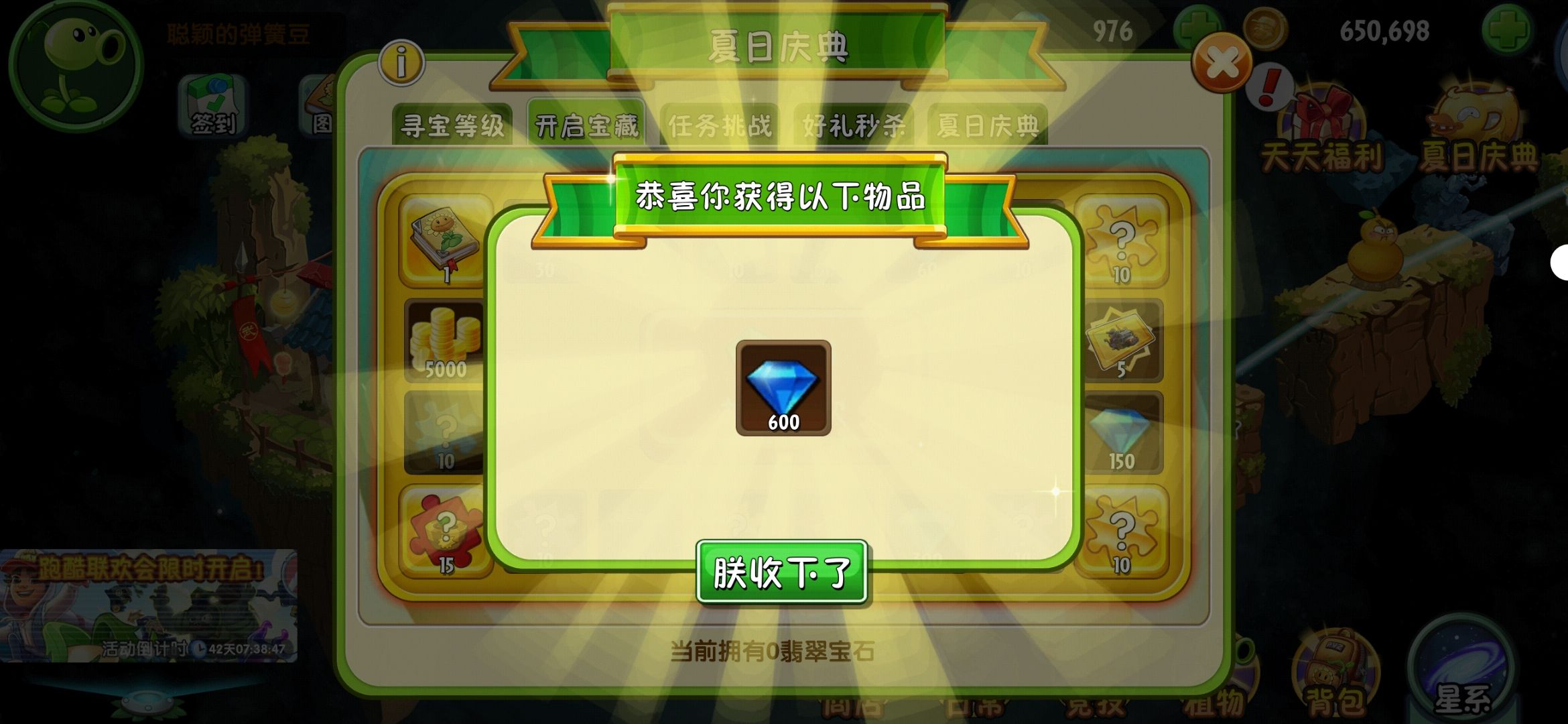 有那么多钻石,想着抽一下限时宝物。结果运气更好啊。