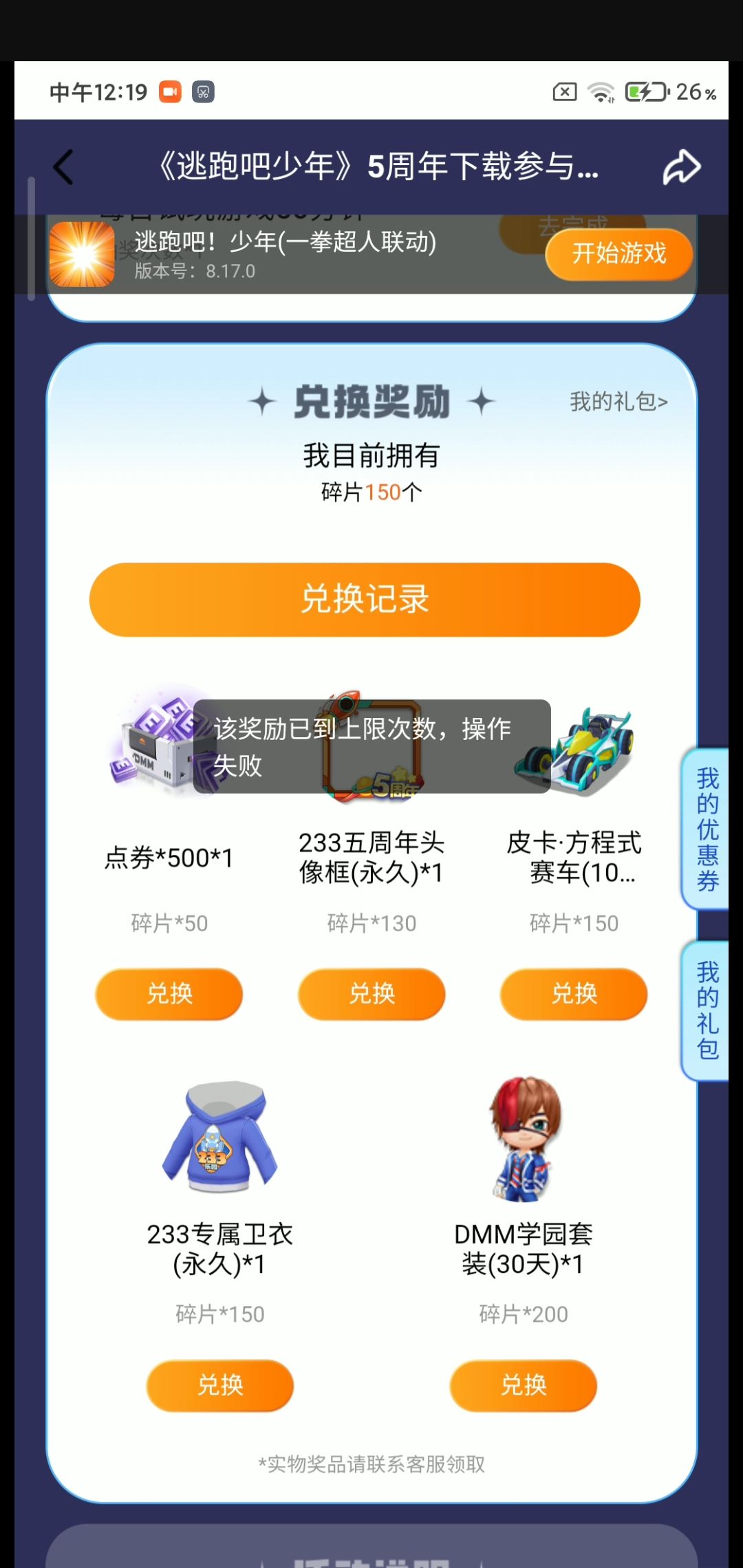 拜托,官方你什么意思?好不容易攒了150个,结果就跳出了这个。