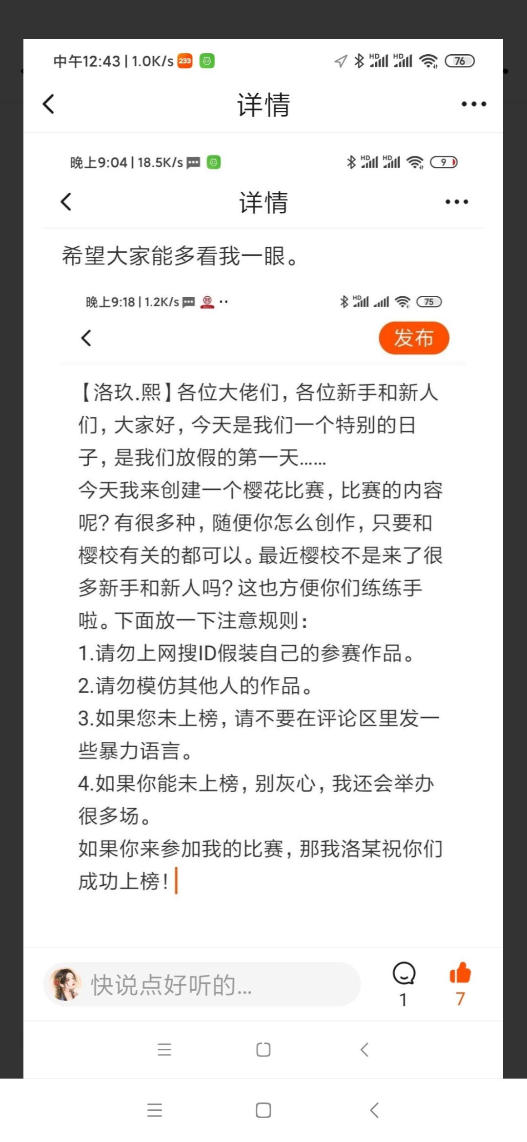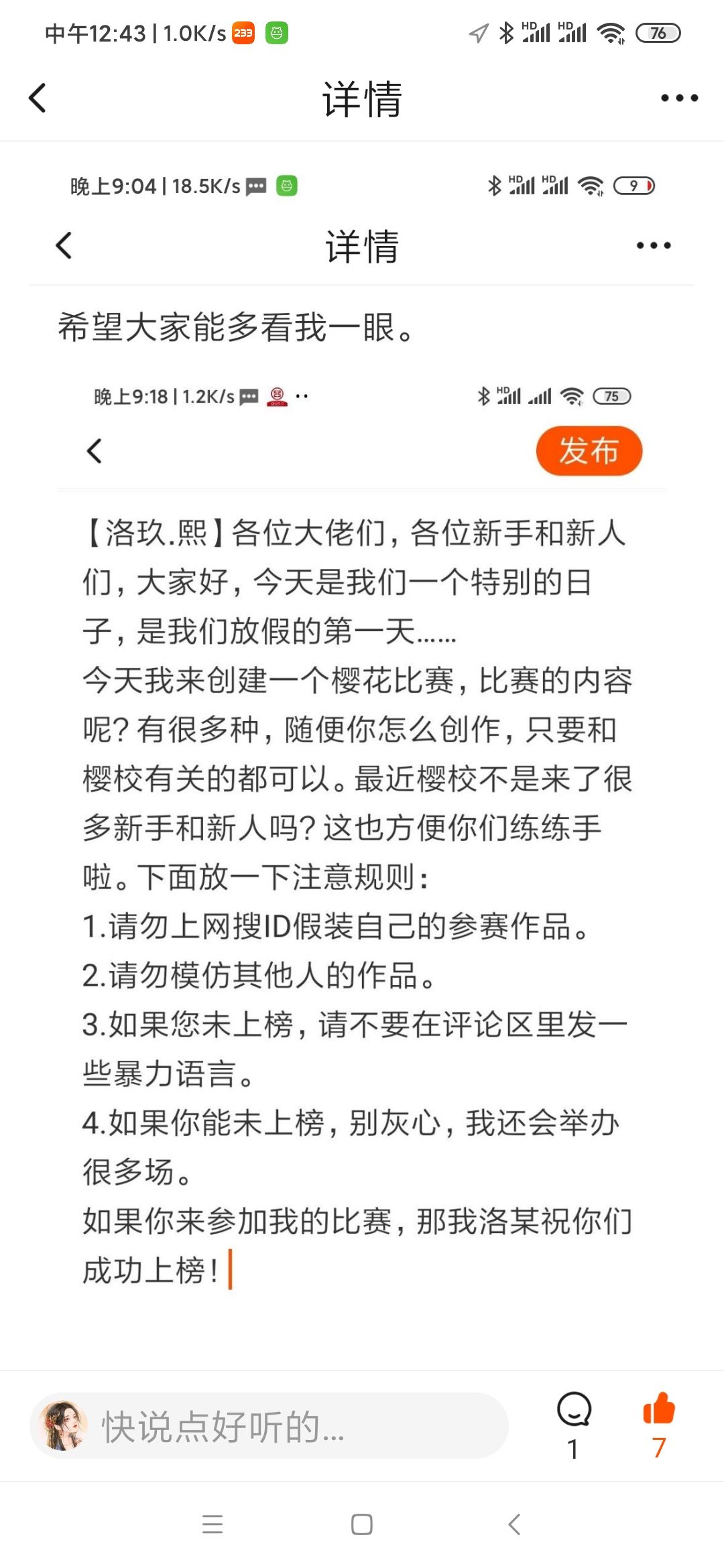 【樱花比赛】快来吧!榜单奖励待会会发的。