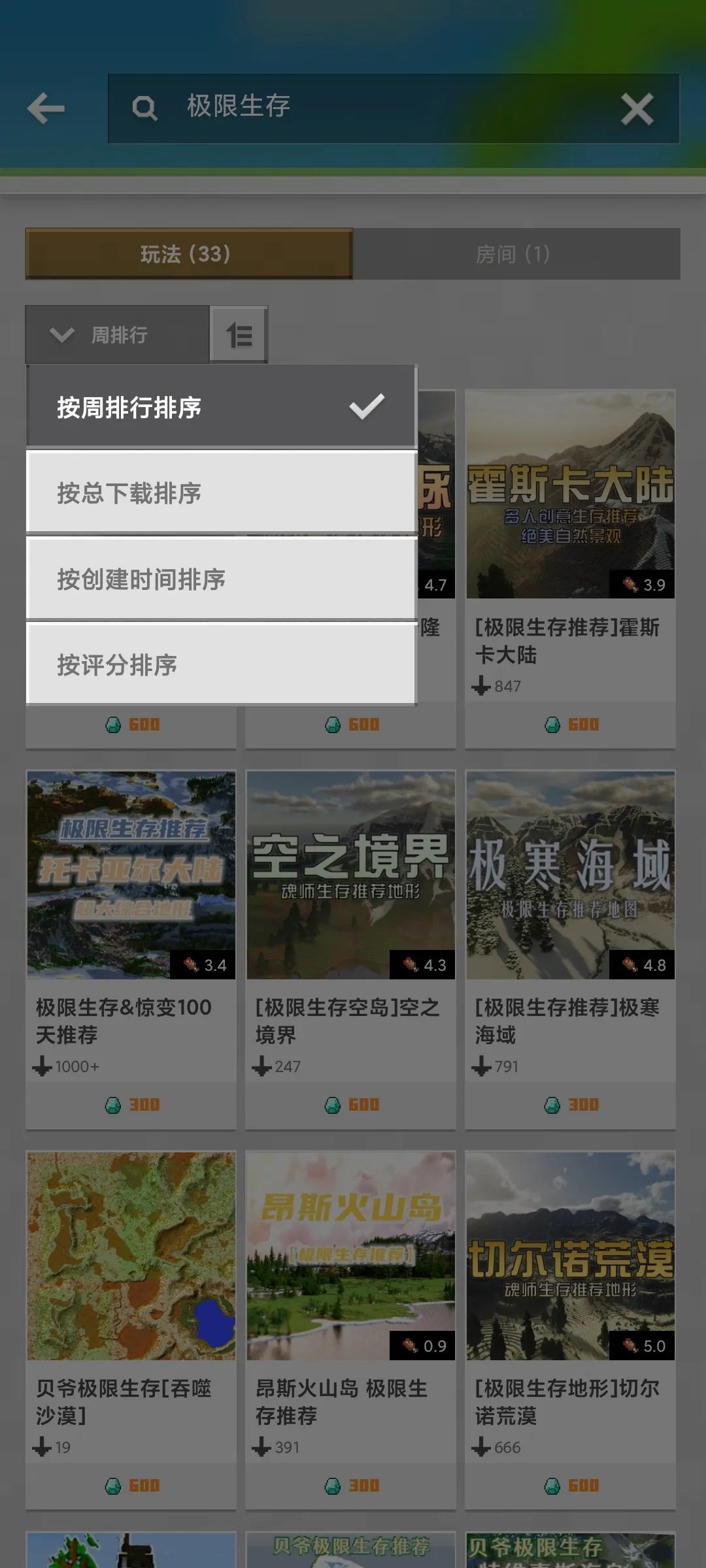 可以按照人气、下载量等多个维度