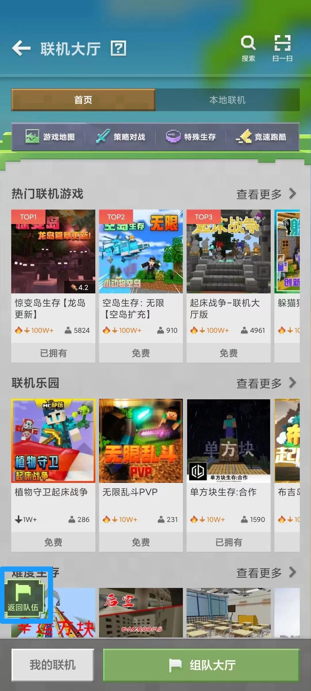就可以前往联机大厅内挑选玩法