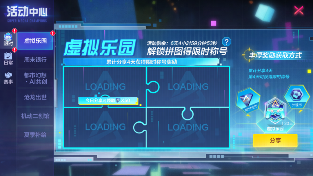 完成新赛季内容分享,累计四天即可获得赛季“虚拟乐园”专属称号!