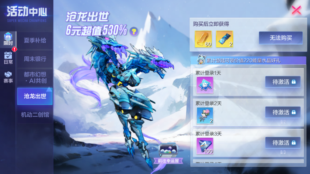 7月13日至7月20日沧龙出世活动上线,6元即可获得超值530%的丰厚奖励,更有沧龙礼券等你来拿!