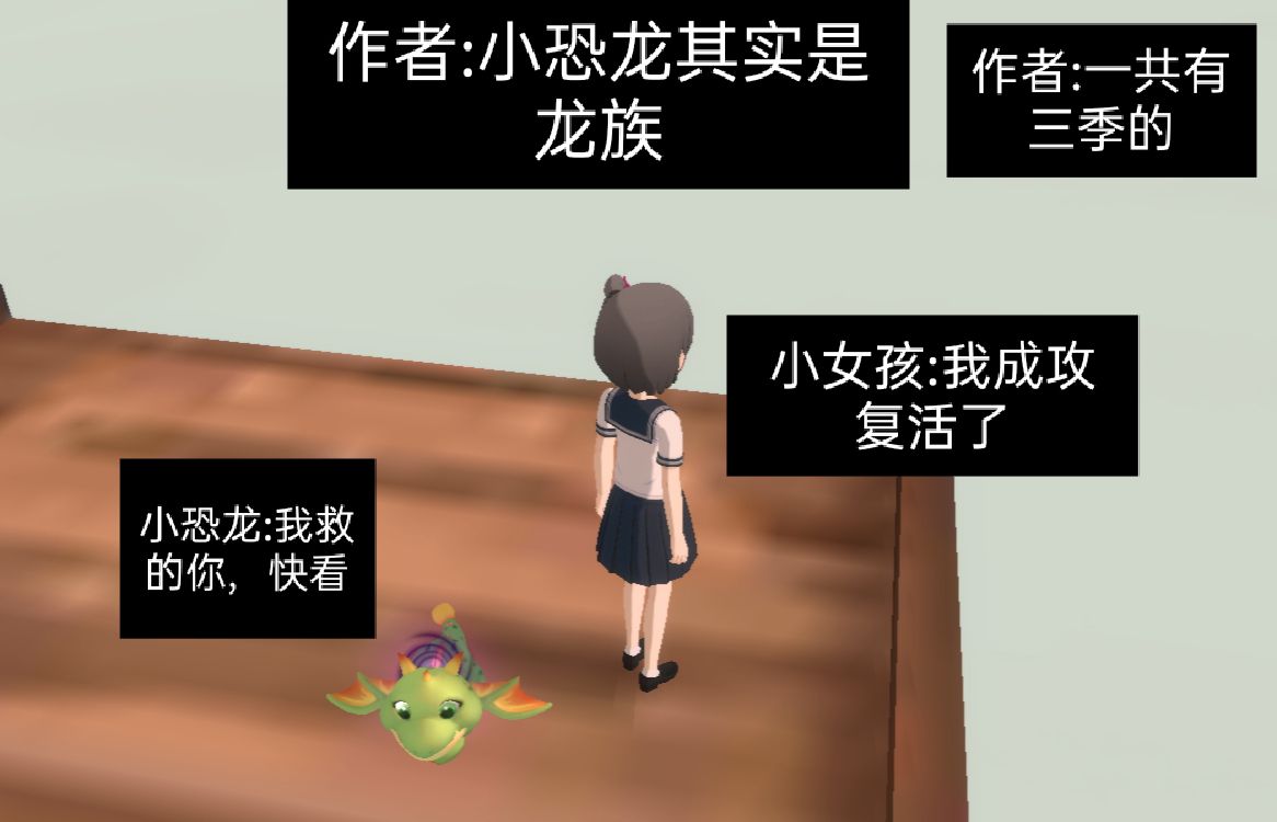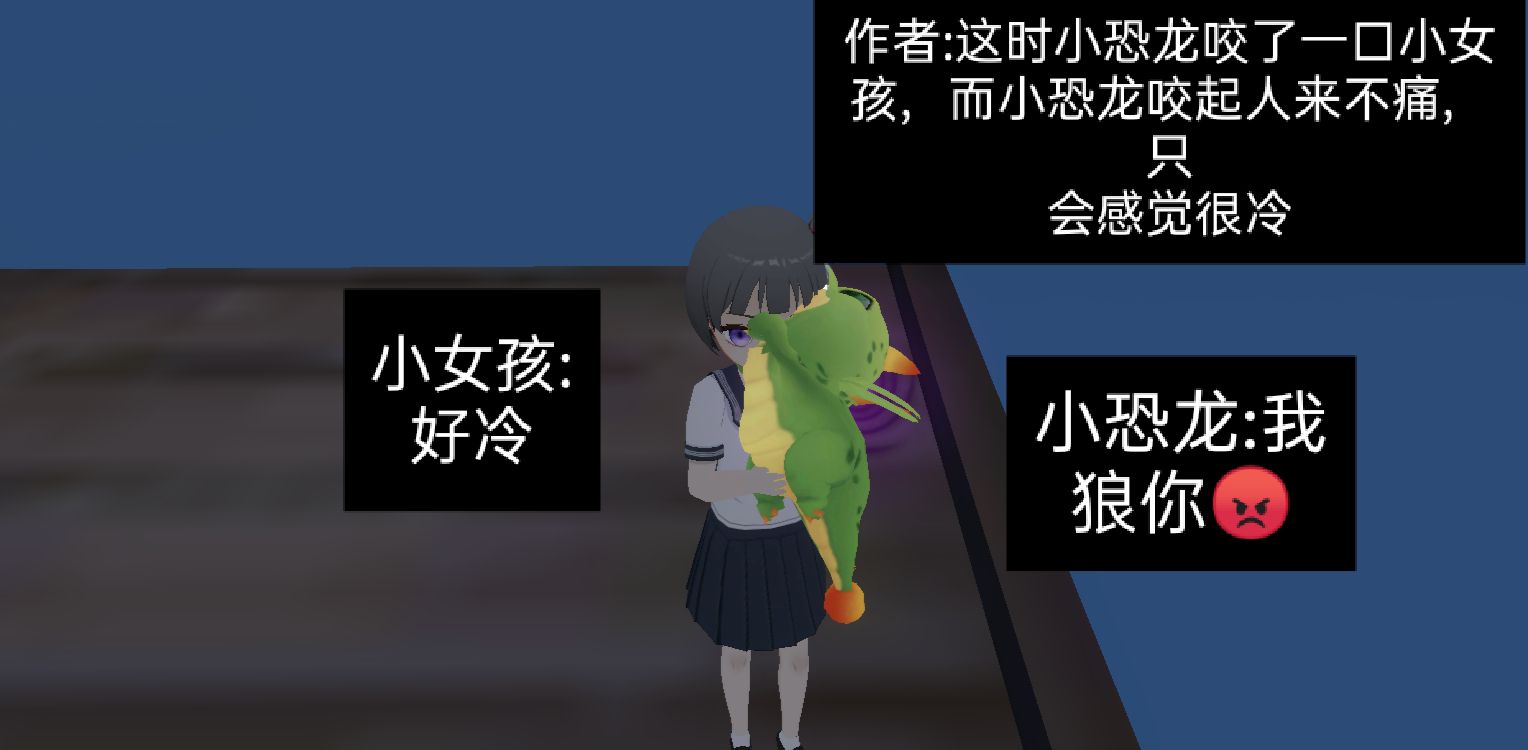 最后的字写错了,最后的图片。上面是写着(小恐龙是火药让小女孩吃了)#改为#:(小恐龙有一颗火药让小女孩吃了)