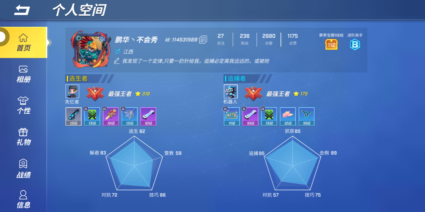 找有实力的好友,经常上线,差不多200以上逃生,100星追捕