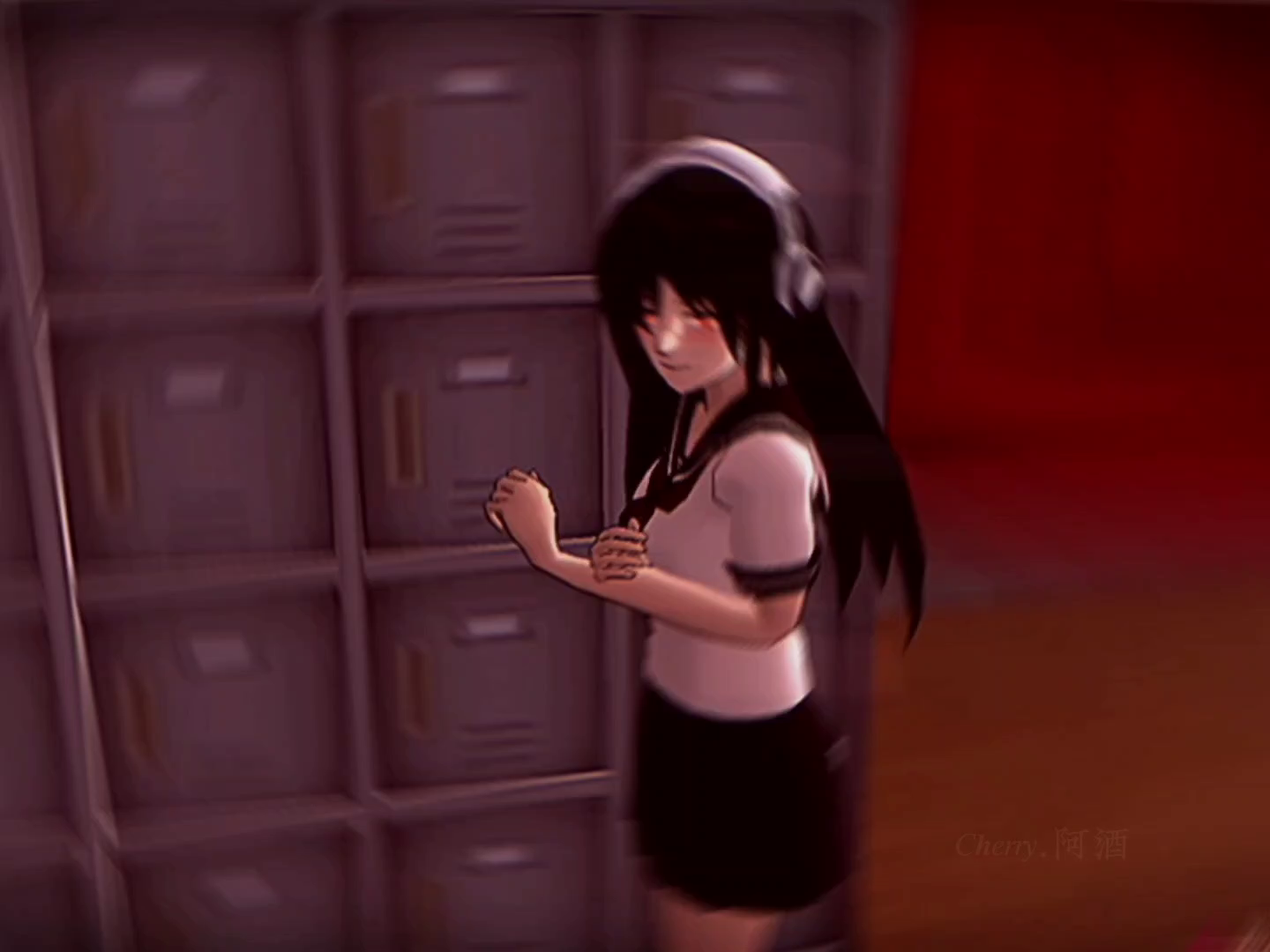 这是《如何把樱校拍出压迫感》第二期内容,搭配emo文案,展示了多组樱花校园模拟器的游戏画面,呈现出带有压迫感的游戏场景风格。