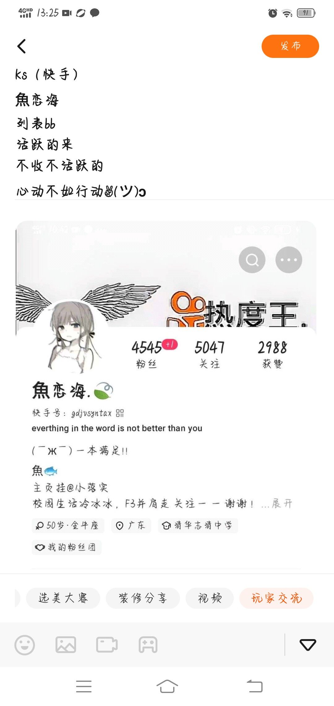 Ks(快手) 魚恋海 列表bb 活跃的来 不收不活跃的 心动不如行动✌︎(ツ)ɔ