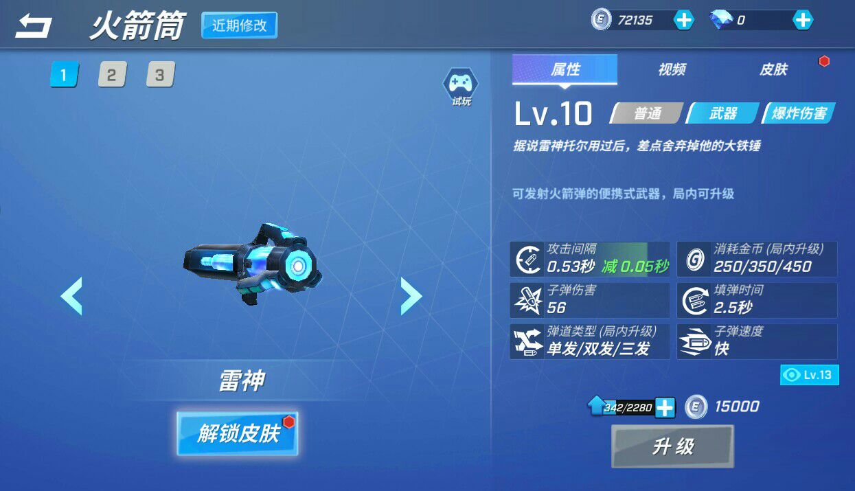 火箭筒终于升到10级了。