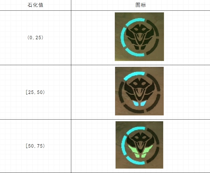 如果还要更精细地知道当前具体石化值是多少,则查看外圈的五个进度格,每亮一格代表多5石化值。