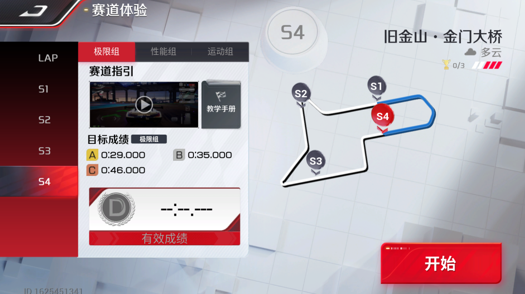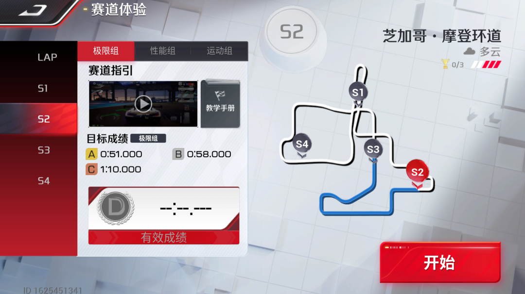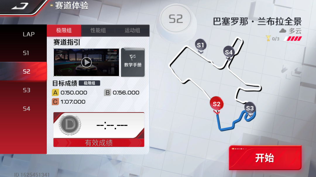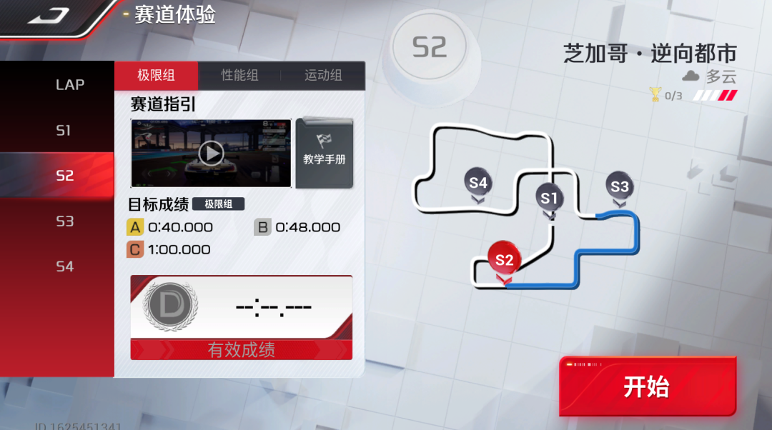此时,我们需要把这个连续组合弯当做一个弯道,可以通过赛道中的辅助标线和漂移浮标规划路线。对于前面的直角组合弯道直接「持续漂移」通过;通过两个直角弯后,以「抓地过弯」通过最后的两个反向组合弯。