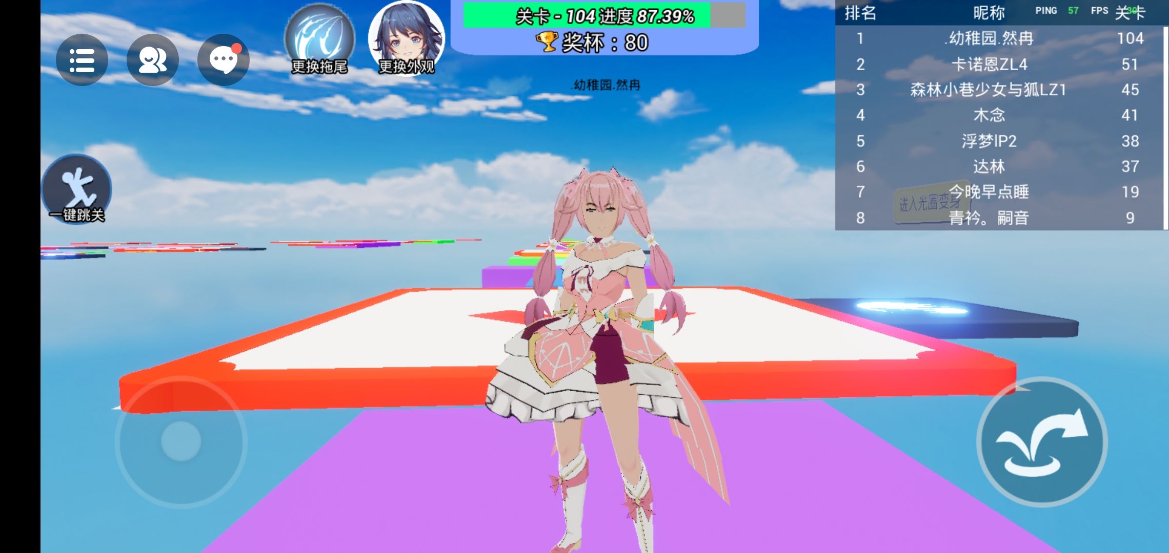 跑到64关我换了个皮肤,跑到104关才发现一个地方人变了,成男的了。