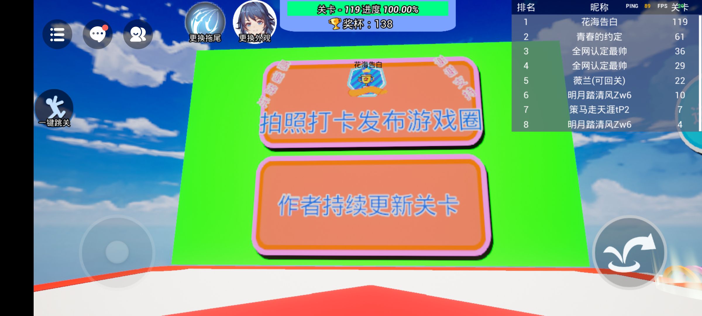 我过关了,但是我到第70多关的时候 我发现我人不见了 ,只有那个名字和那个拖尾 ,是不是卡bug了?
