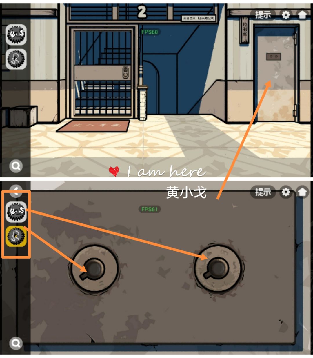 16.(二楼长廊)点击控制室,放入两个【齿轮】,打开门