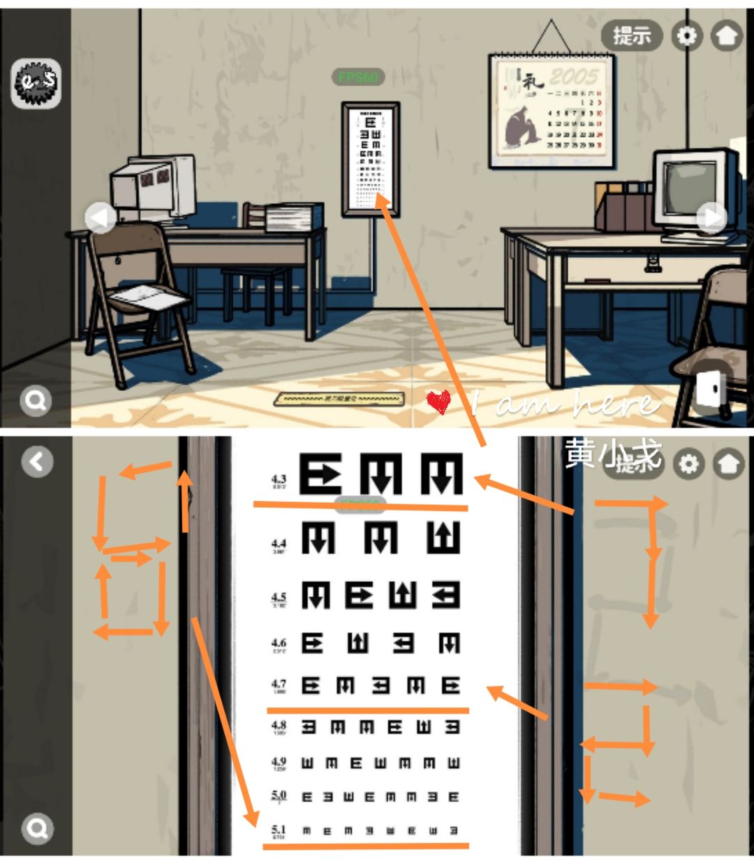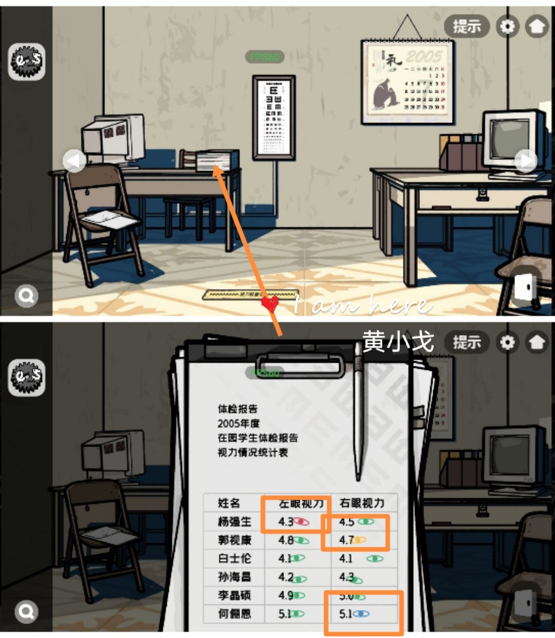 1.(办公室-档案柜)点击架子,获得【视力表】