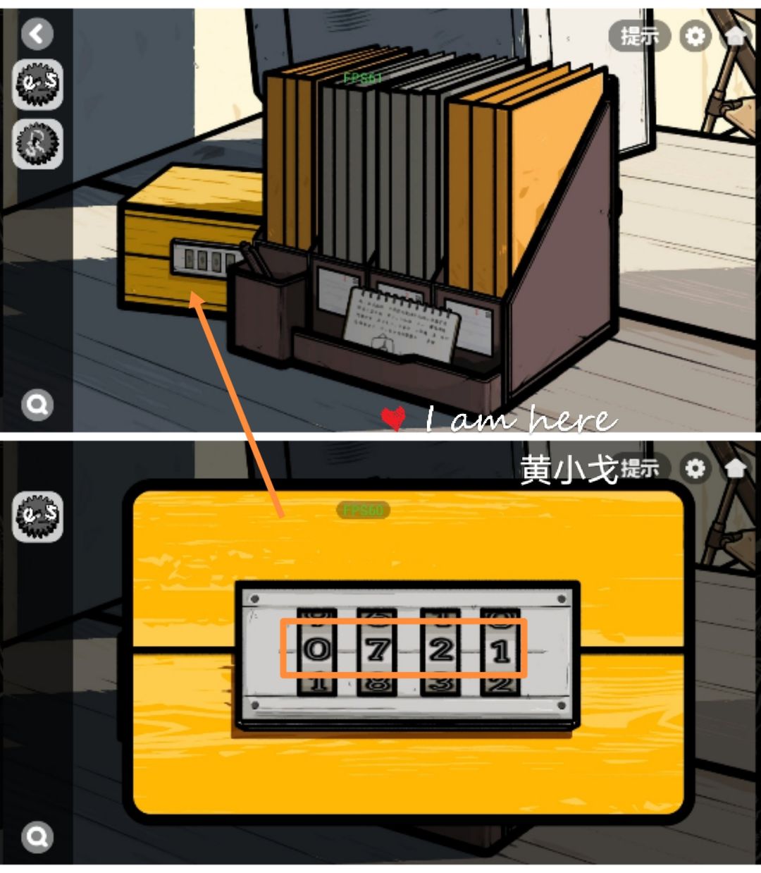 14.点击桌子上文件旁边的黄色盒子,输入密码:0721