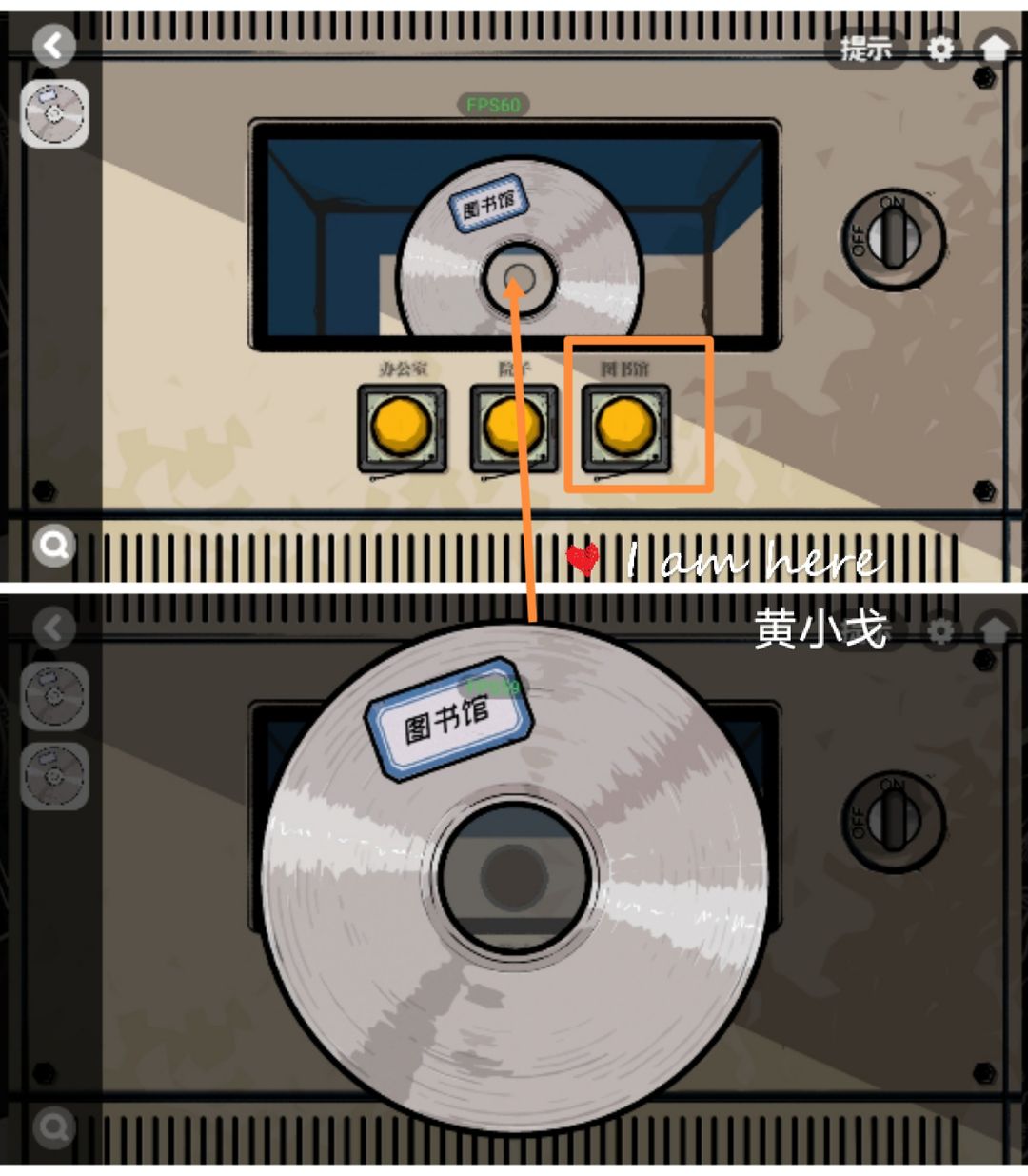 17.(控制室-电箱)点击左边的电箱,根据右边电箱的提示完成小游戏,把开关调到ON,通电