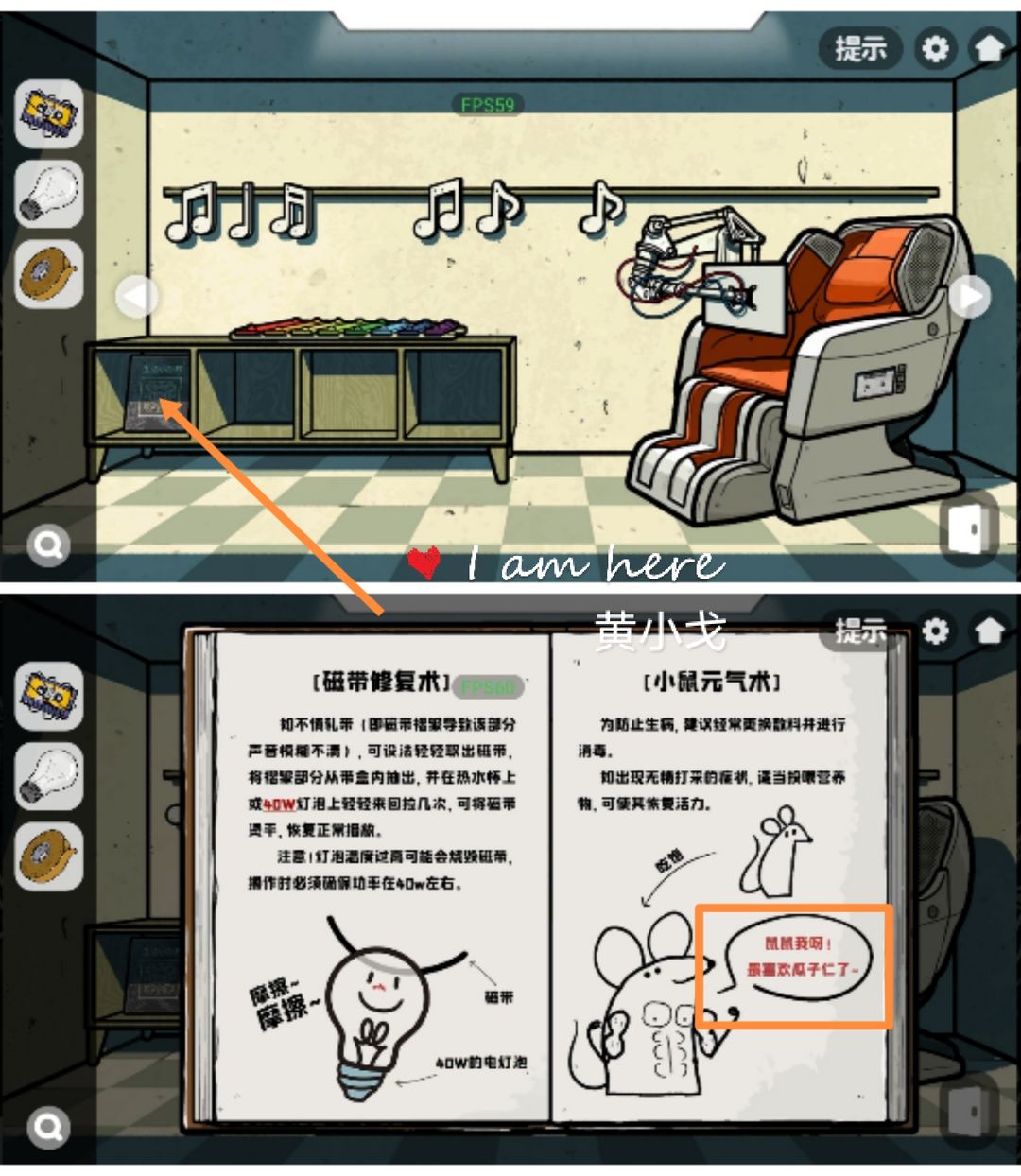 5.(研究室-柜子)点击查看柜子中的生活小百科(磁带修复:功率要求40,仓鼠爱吃瓜子)