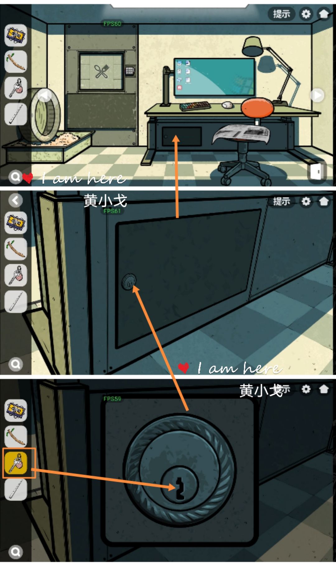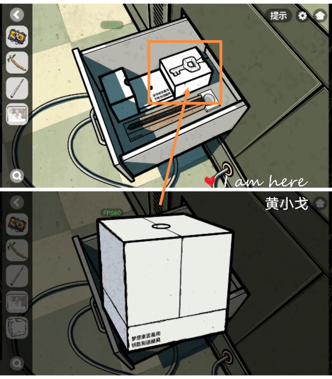 15.点击桌子下方的柜子,用【钥匙】打开