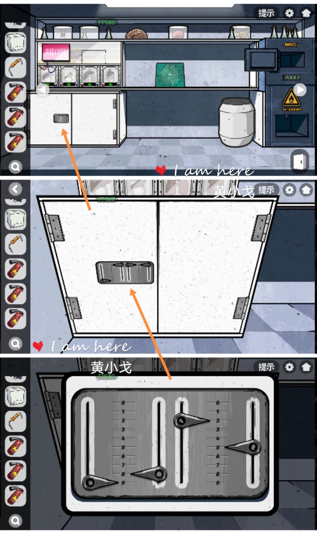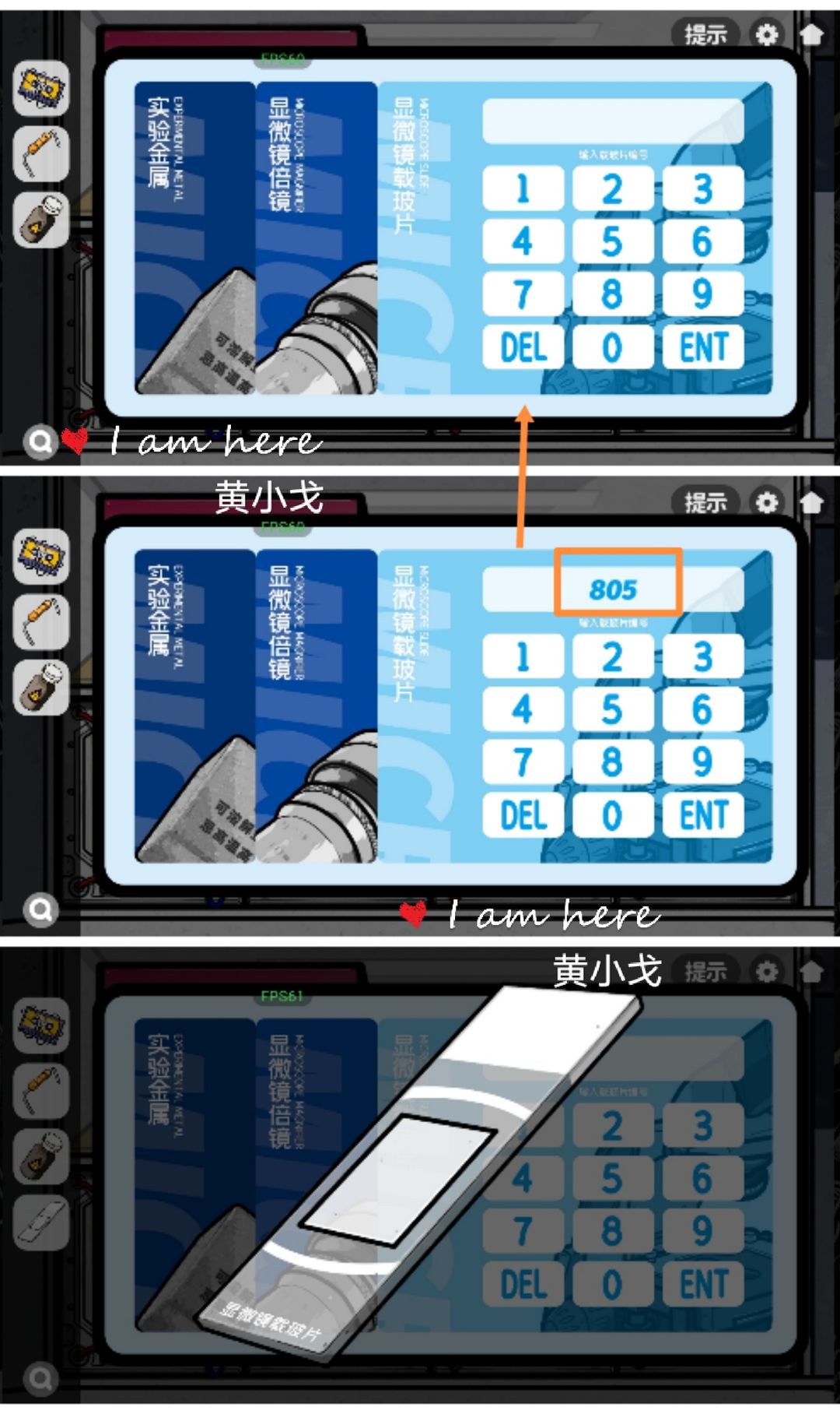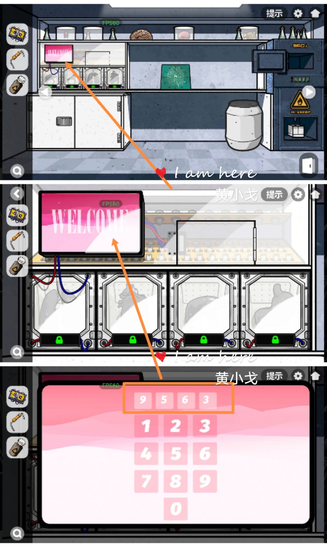 9.(实验室-标本)点击左下角的柜子,根据上面的图案,调整到对应的数字:9825