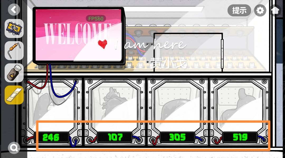 6.根据纸张信息,调整对应颜色的胶囊,获得线索:(A107,I305,C519,D246)