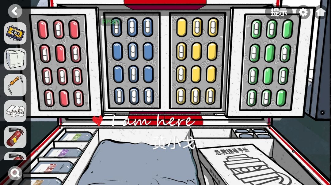 19.点击中间的开关,调成ICAD(根据模型上的信息和药箱中胶囊上的信息和字母,还有电脑中的顺序:肝胃心肺),点击开关,获得【钥匙】