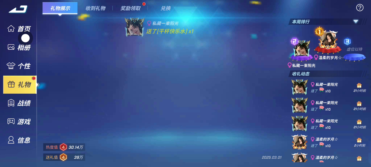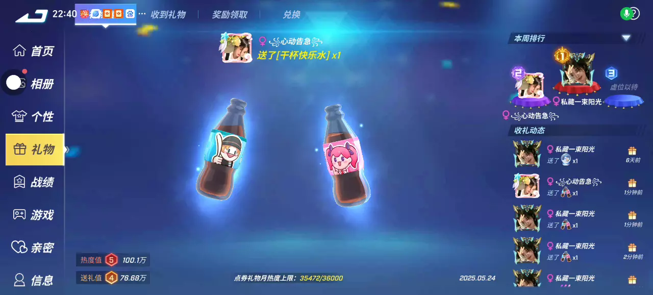 礼物热度值100万了 猜猜这号玩了多久了