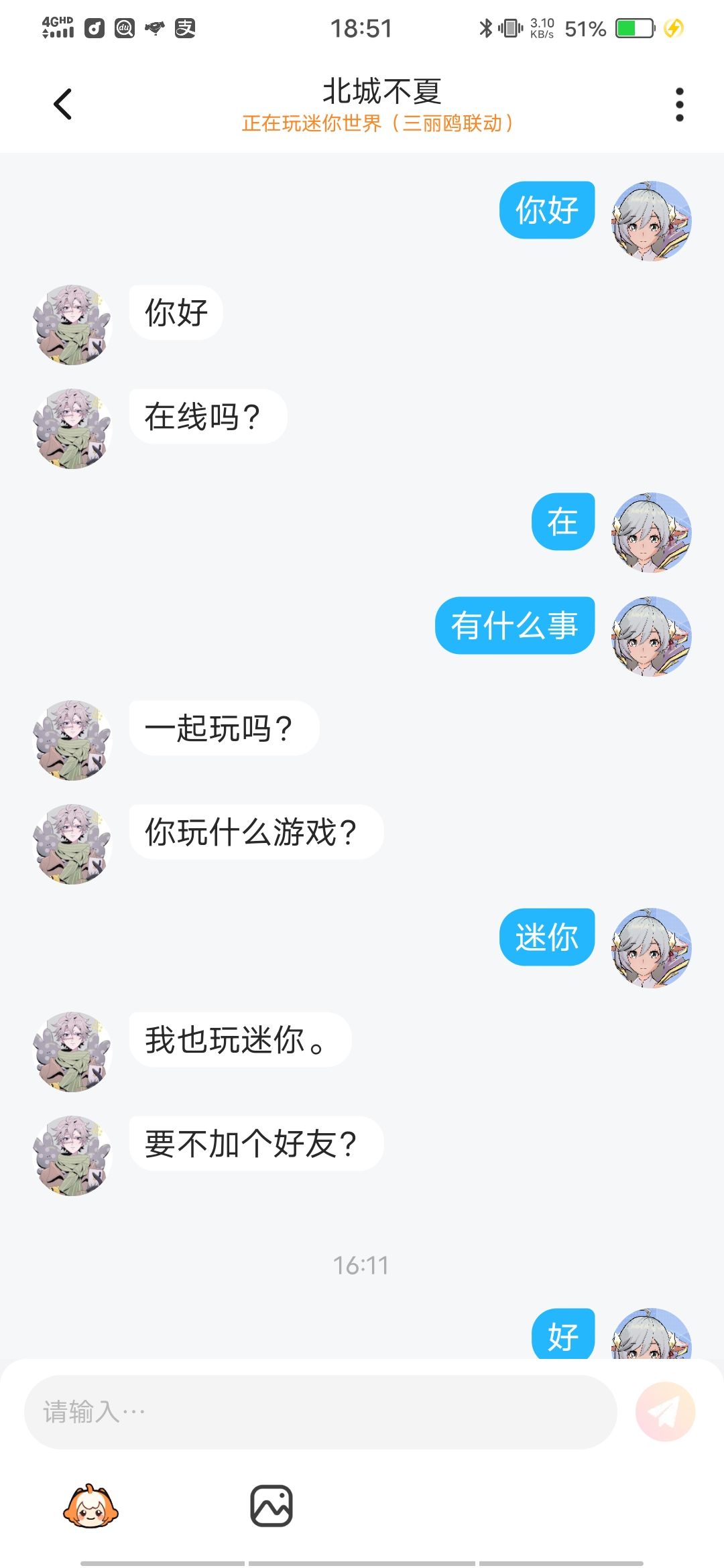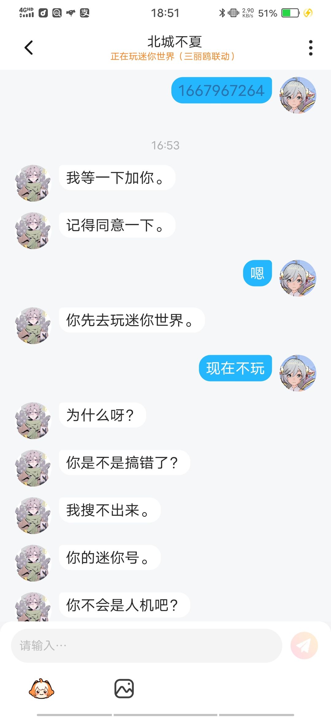 我咋了,然后把我拉黑了。以后不交友了