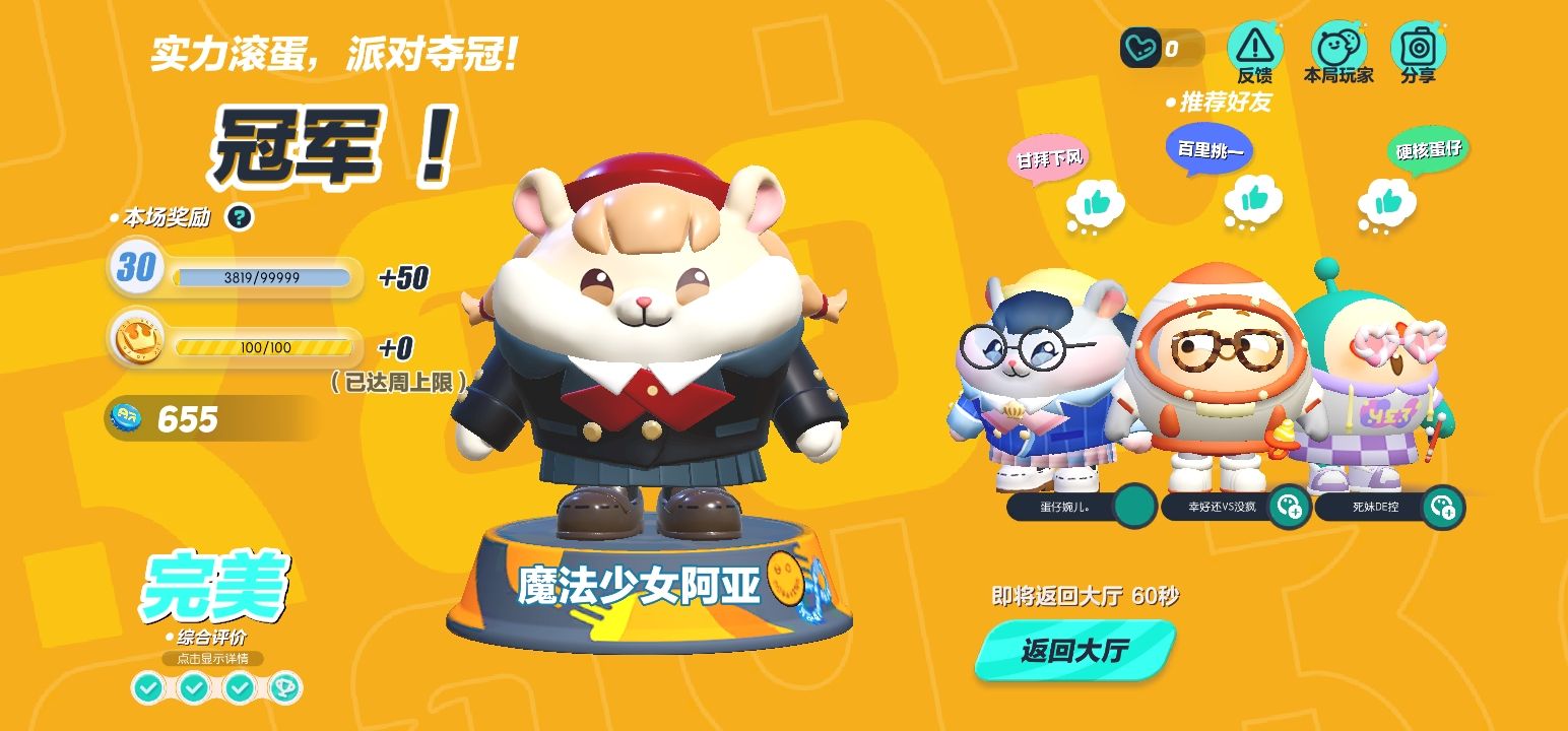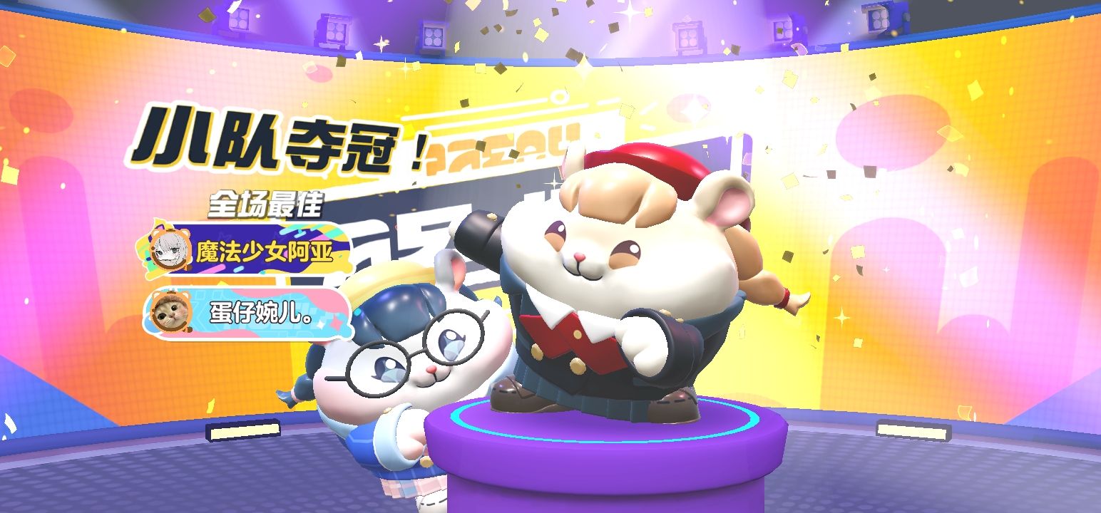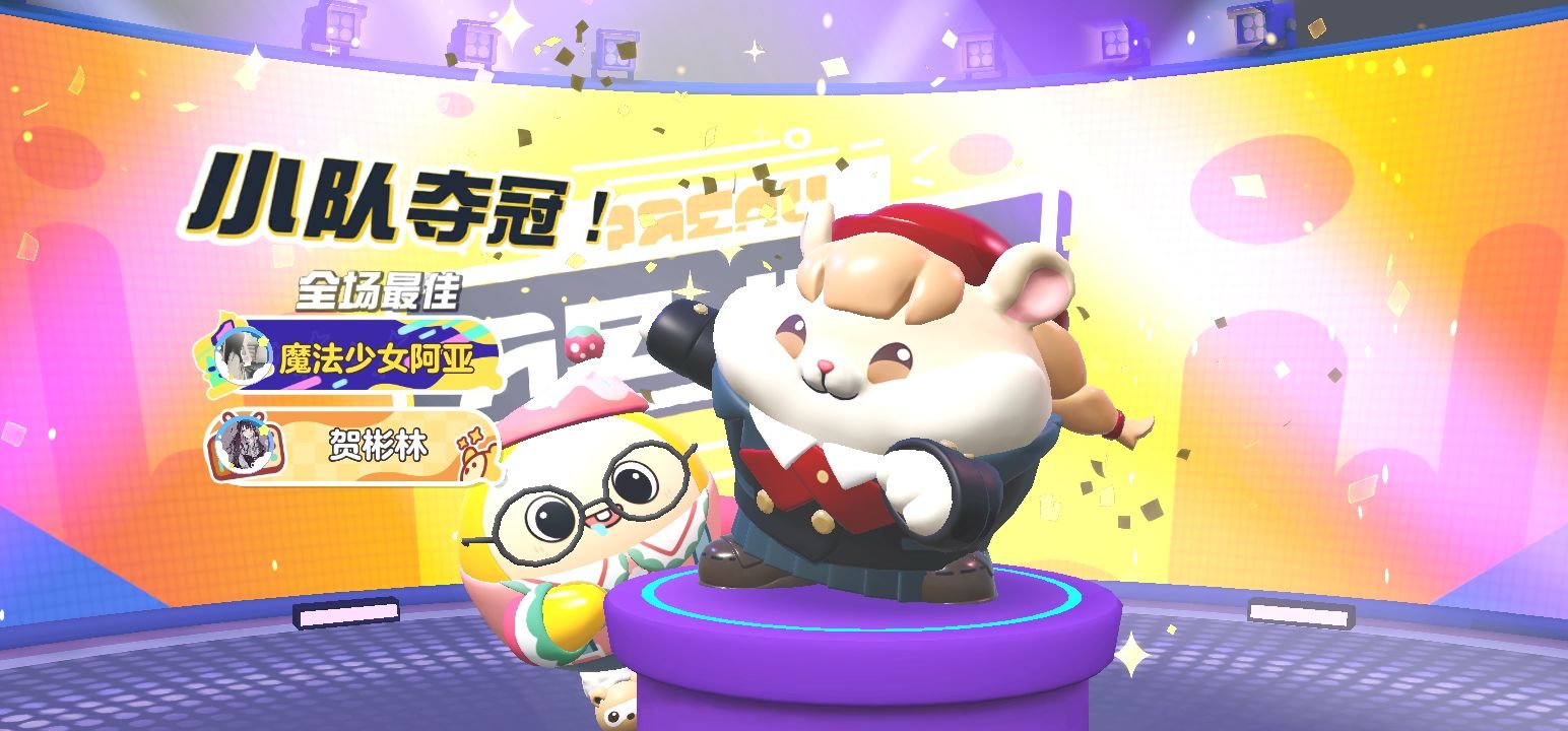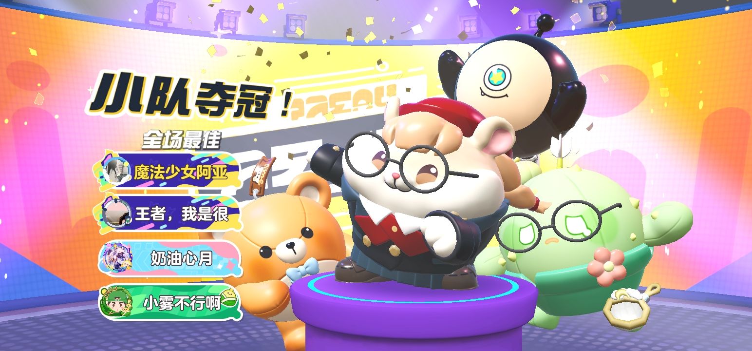 今天和闺蜜,还有闺蜜的同学一起玩四人巅峰派对赢了!