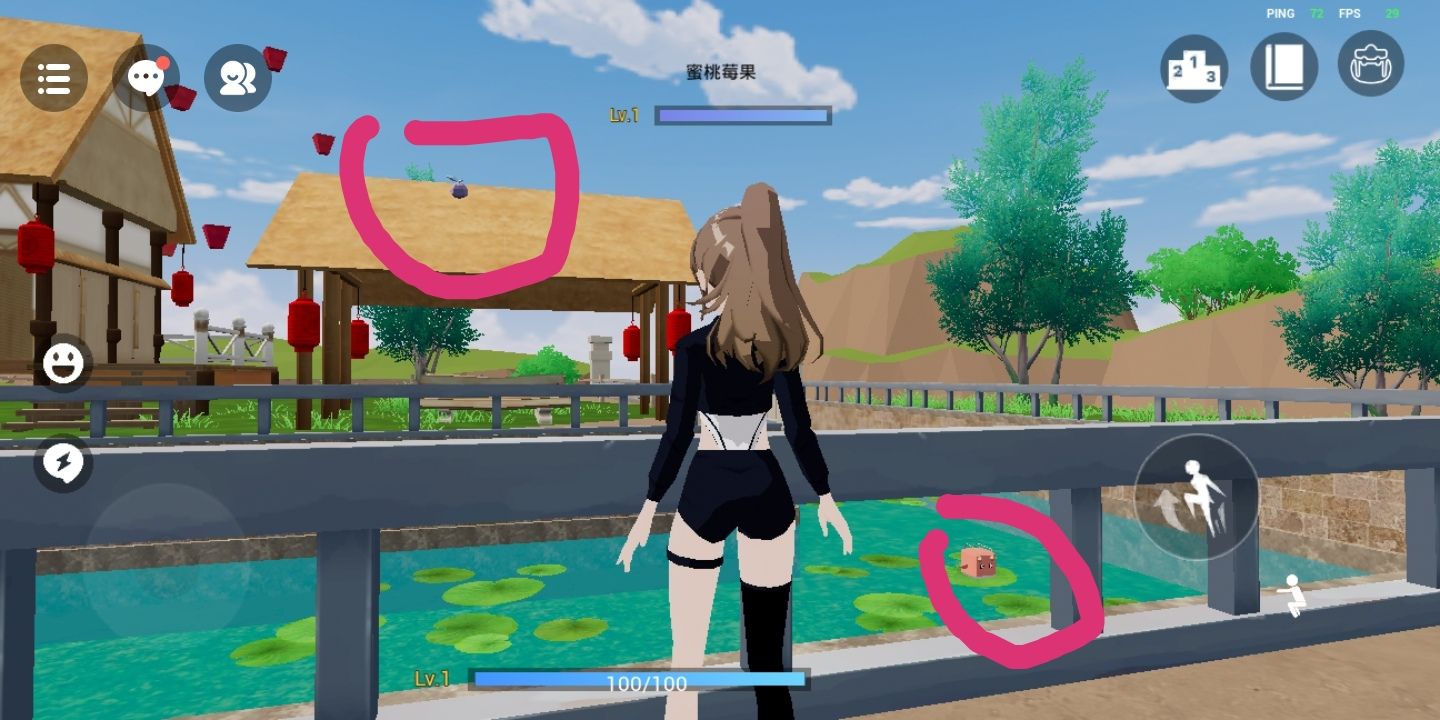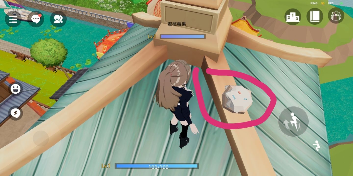 屋顶上还有河里有很多个,茅草屋顶上有两个