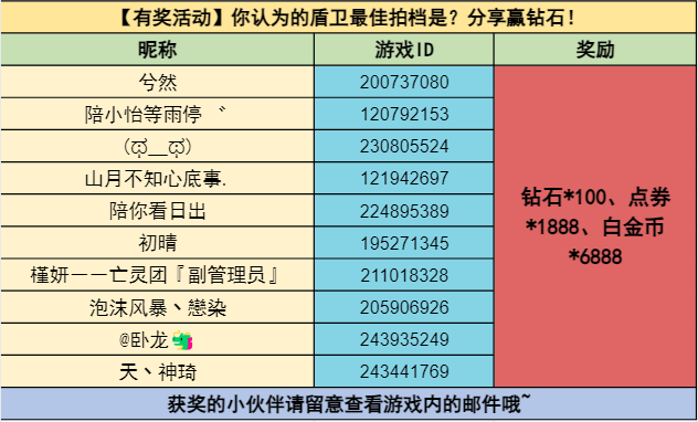 游戏平台(手游)+游戏ID+你认为的盾卫组队推荐+原因(如:手游 ID123456 )