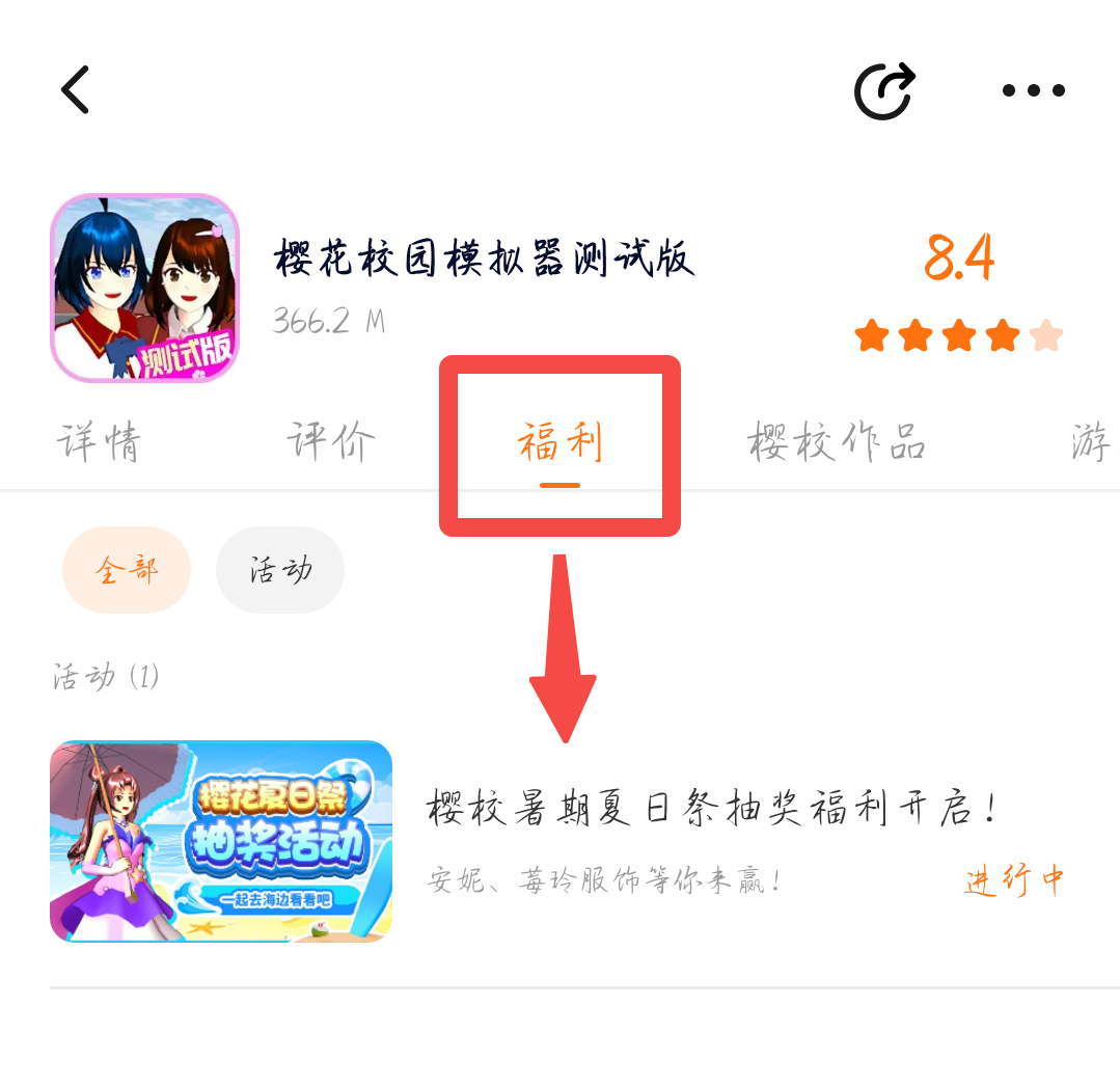 或者-主页搜索【樱花校园模拟器测试版】-进入游戏详情页-福利界面